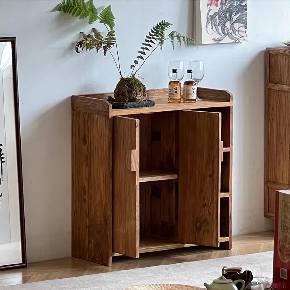 - التصميم: بابان خشبيان + رفوف جانبية مفتوحة