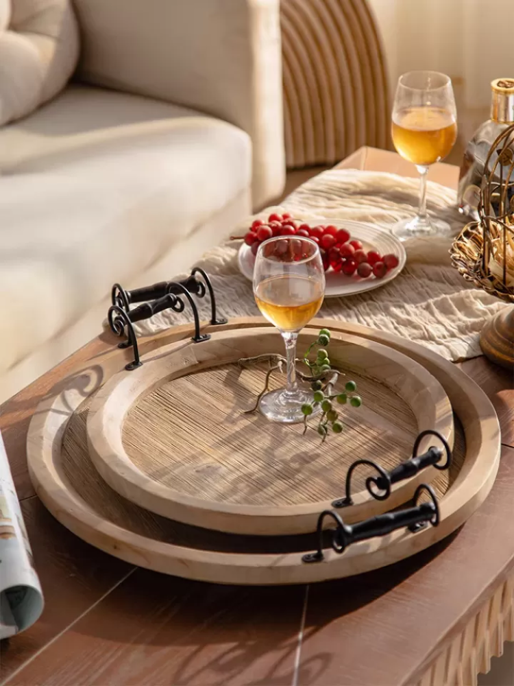 أضف لمسة من الأناقة والدفء إلى ضيافتك مع صواني تقديم للضيوف المصنوعة من الخشب الطبيعي الفاخر. تصميم دائري مميز، مزوّد بمقابض معدنية فاخرة تضفي طابعًا عصريًا يليق بمناسباتك الخاصة، ويجمع بين الوظيفة والجمال في آنٍ واحد.