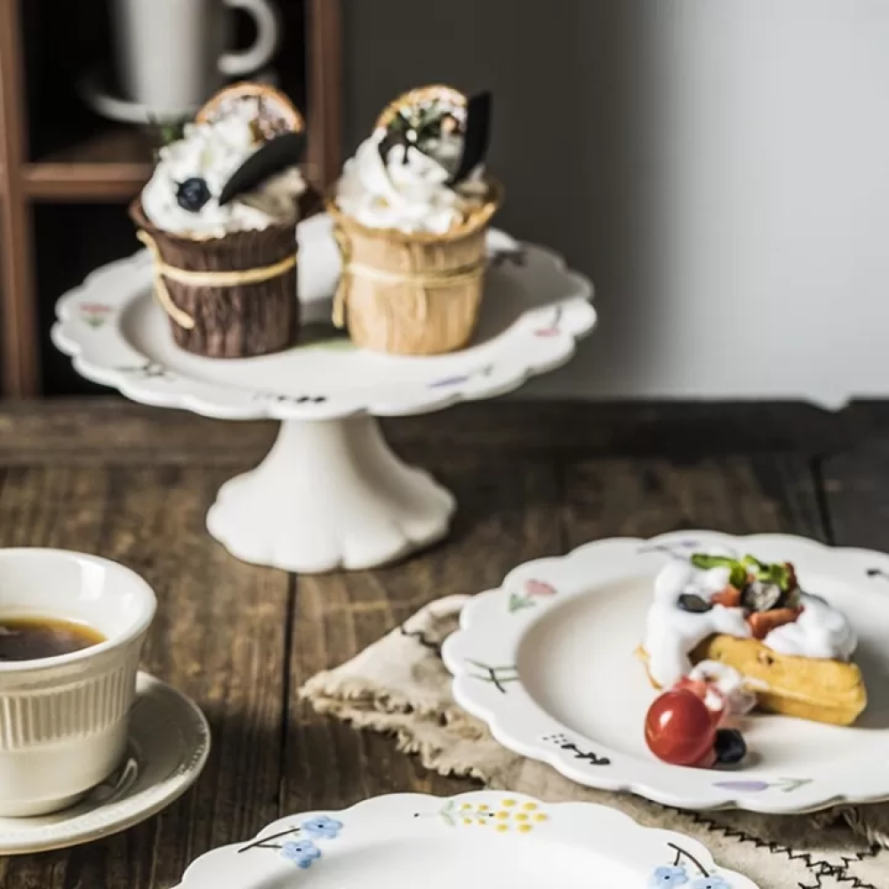 صينية حلا أنيقة بتصميمها المستوحى من الطابع الريفي البسيط ستمنح طاولتك لمسة دفء وجمال في كل مناسبة. مصنوعة بعناية من البورسلان الفاخر مع قاعدة مرتفعة تجعل الحلا يبدو وكأنه قطعة معروضة بفخر.