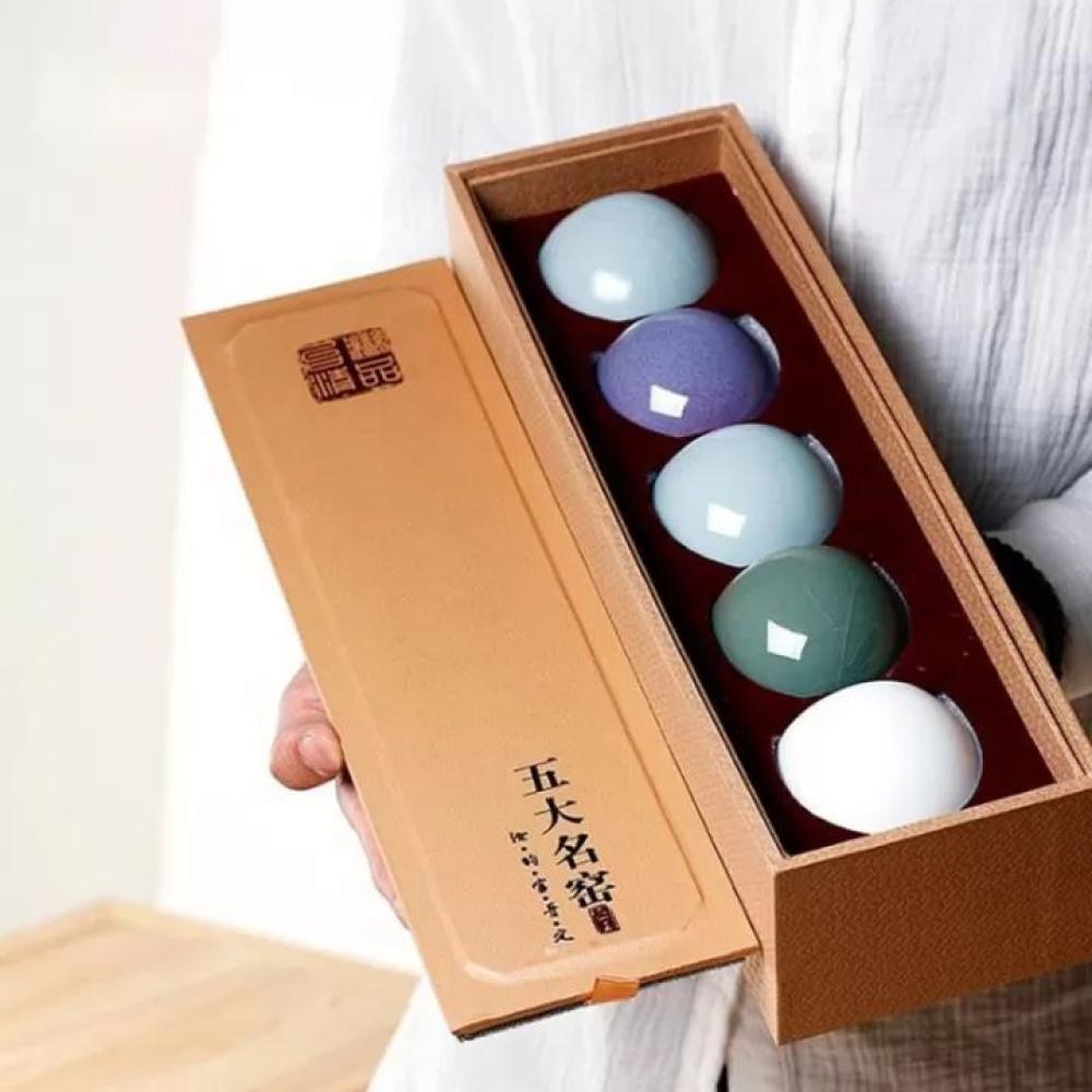 يتكوّن من خمس أكواب سيراميك مصقولة يدوياً، كل واحدة بلون مختلف بلمسة لامعة تعكس البساطة العصرية والذوق الفاخر.