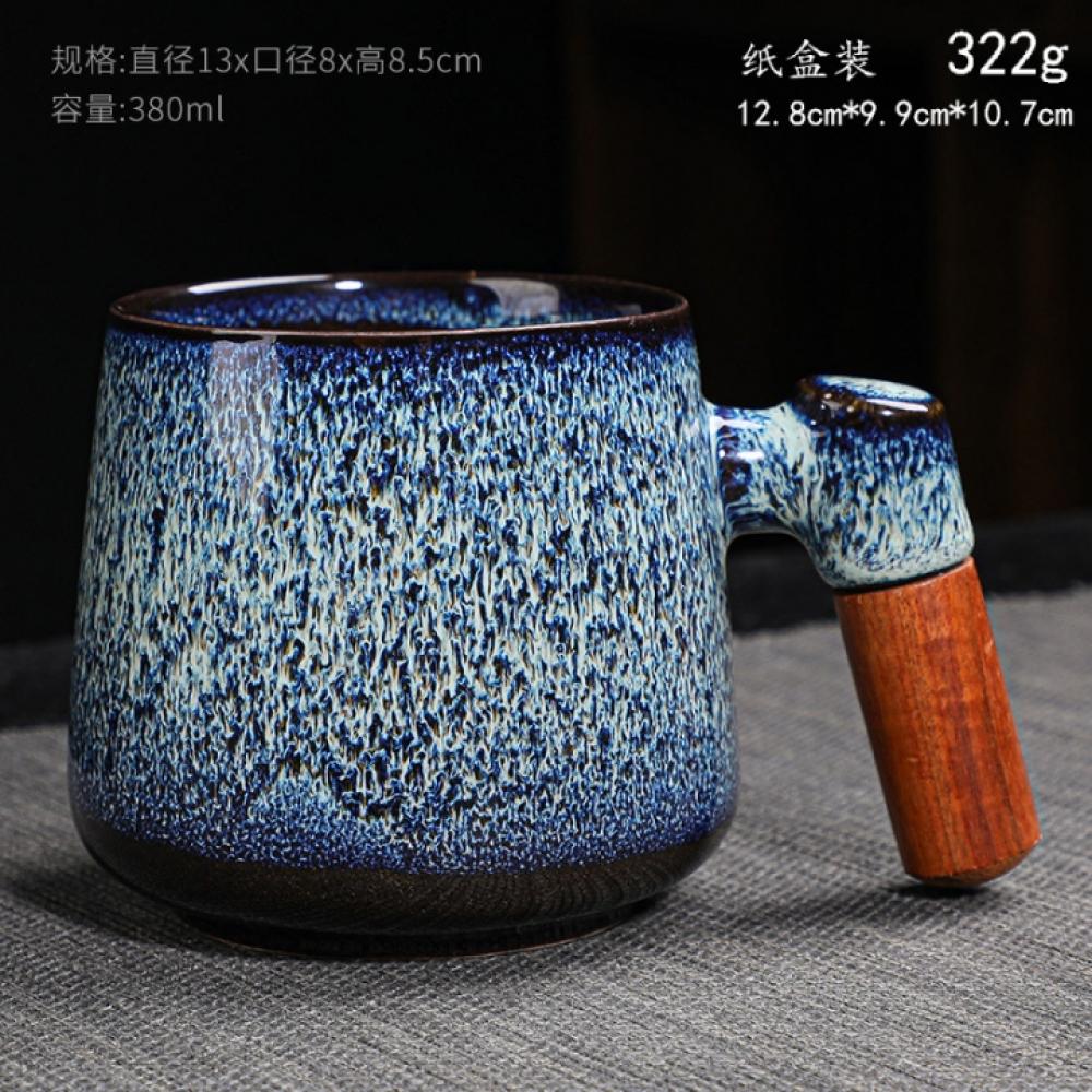 كوب أنيق مصنوع من البورسلين عالي الجودة مع يد خشبية تضيف لمسة دافئة وعملية. تصميمه العصري يمنحك تجربة شرب مريحة ومميزة.