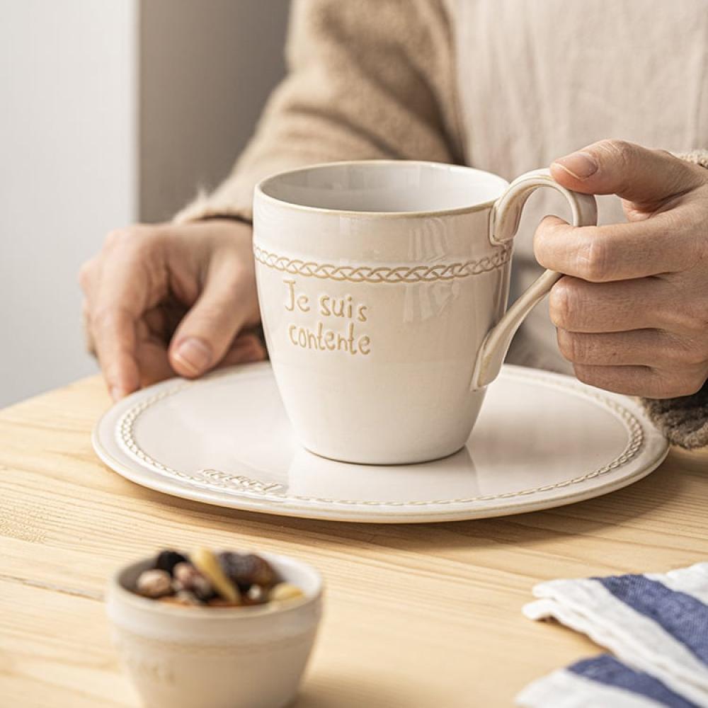 بهدوء اللون ونعومة الملمس، يأتيك كوب قهوة سيراميك أبيض ليُعبّر عن لحظة صفاء لا تحتاج إلى زخارف، فقط حضور خفيف يملأ الطاولة بهدوء وأناقة. نقشة فرنسية بسيطة منقوشة على سطح الكوب تهمس بأن السعادة تكمن في القليل، في كوب دافئ، وفي الصباحات البسيطة.